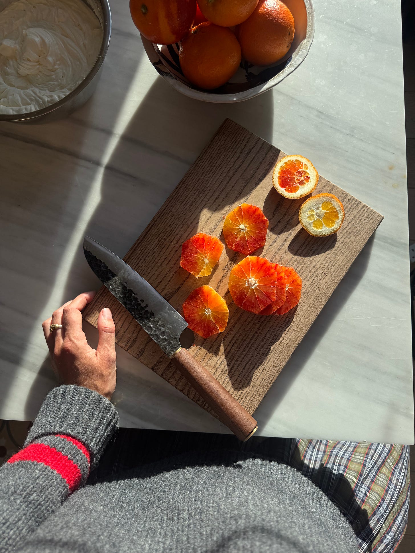 I think it is partly their fleetingness that makes them feel so romantic. Blood oranges arrive (and all too swiftly depart) when we most need reminding that abundance still exists, even in the leanest months. They are proof that beauty can be coaxed from cold, that flavour can deepen under pressure, and a reminder that somewhere, a thousand odd miles away, the sun is shining on the orange groves.
